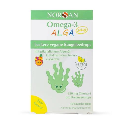 Омега-3 мастните киселини са от съществено значение за здравословното развитие на децата в утробата и през детството. За разлика от нашите рибни продукти, нашите масла от водорасли попадат в обхвата на Регламента на ЕС за нови храни. Това означава, че за тези продукти се прилагат специални инструкции за употреба, тъй като маслото от водорасли все още се счита за „нова храна“. Поради това сме законово задължени да препоръчваме нашия продукт Omega-3 KIDS Jelly Vegan, който съдържа масло от водорасли, за деца на възраст 3 години и повече. Консултирайте се с Вашия лекар относно дозировката за деца под 3-годишна възраст.